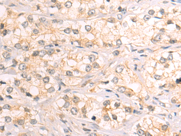 The image on the left is immunohistochemistry of paraffin-embedded Human prostate cancer tissue using ab100018(TUBA4A Antibody) at dilution 1/55, on the right is treated with recombinant protein. (Original magnification: ×200)...