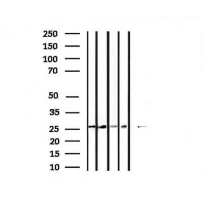 Western blot analysis of extracts from 293, rat brain, mouse lung, rat spleen, using 14-3-3 γ Antibody....