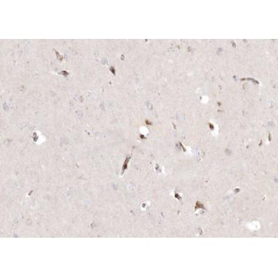 ab10970 at 1/100 staining human brain tissue sections by IHC-P. The tissue was formaldehyde fixed and a heat mediated antigen retrieval step in citrate buffer was performed. The tissue was then blocked and incubated with the antibody for 1.5 hours at 22°C. An HRP conjugated goat anti-rabbit antibody was used as the secondary antibody....