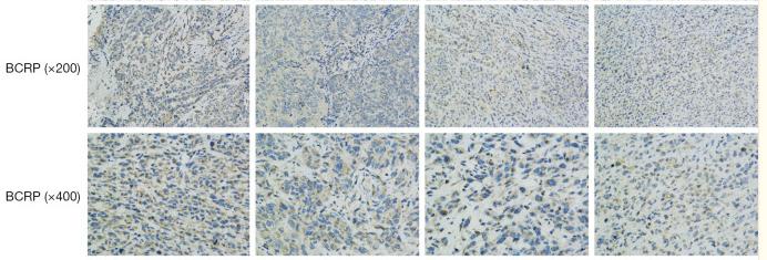 Figure 7 PECZ and docetaxel decreased the expression of drug resistance genes. Representative images of immunohistochemical showing PXR, MDR1, CYP3A4, and BCRP in tumor tissues in the different groups. Original magnification ×200, ×400; (x¯±s, n=3). PECZ, petroleum ether extracts of Curcuma zedoaria; PXR, pregnane X receptor; MDR1, multidrug resistance 1; BCRP, breast cancer resistance protein; CYP3A4, cytochrome P-450....