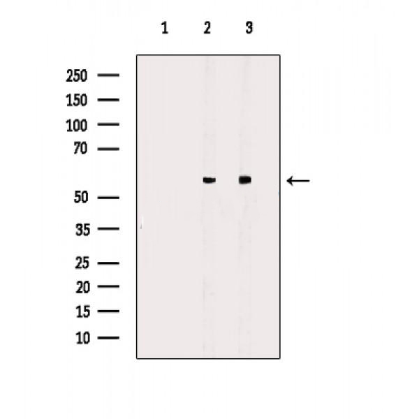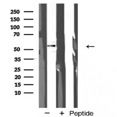 Western blot analysis of extracts from various samples, using Abi 1 Antibody. Lane 1: 293t, treated with blocking peptide; Lane 2: 293t; Lane 3: Rat lung....