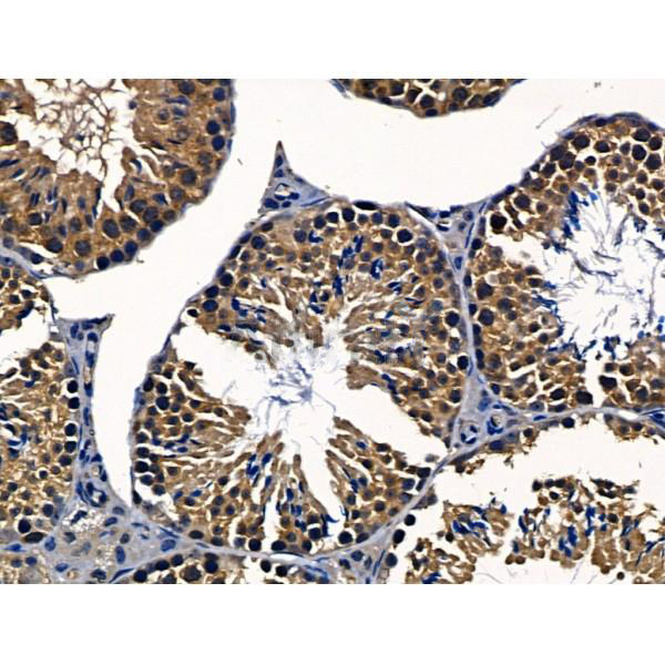 ab10951 at 1/100 staining Mouse testis tissue by IHC-P. The sample was formaldehyde fixed and a heat mediated antigen retrieval step in citrate buffer was performed. The sample was then blocked and incubated with the primary antibody at 4°C overnight. An HRP conjugated anti-Rabbit antibody was used as the secondary antibody....