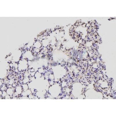 ab11596 at 1/100 staining Mouse lung tissue by IHC-P. The sample was formaldehyde fixed and a heat mediated antigen retrieval step in citrate buffer was performed. The sample was then blocked and incubated with the antibody for 1.5 hours at 22°C. An HRP conjugated goat anti-rabbit antibody was used as the secondary antibody....