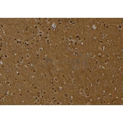 ab13832 at 1/100 staining Rat brain tissue by IHC-P. The sample was formaldehyde fixed and a heat mediated antigen retrieval step in citrate buffer was performed. The sample was then blocked and incubated with the antibody for 1.5 hours at 22°C. An HRP conjugated goat anti-rabbit antibody was used as the secondary antibody....