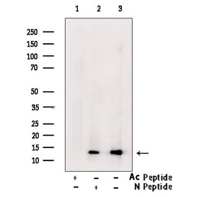 Acetyl-Histone H2B (Lys20) Antibody detects endogenous levels of Acetyl-Histone H2B only when acetylated at Lys20.