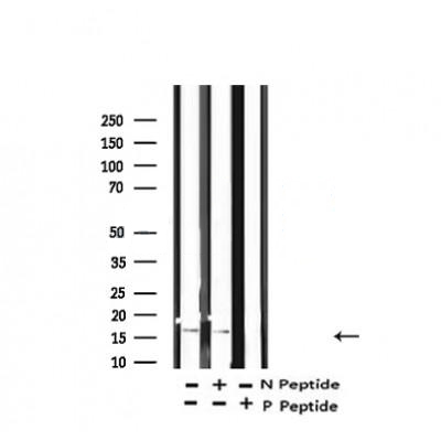 Western blot analysis of Histone H3 (acetyl K14) in lysates of COLO205 cells(TSA 1M, 18 hr), using Histone H3 (acetyl K14) Antibody(ab10665)....