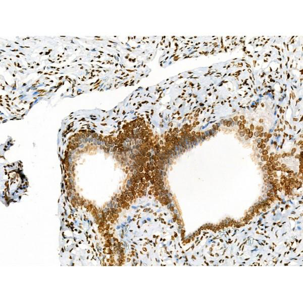 ab10665 at 1/100 staining Human ovarian cancer by IHC-P. The sample was formaldehyde fixed and a heat mediated antigen retrieval step in citrate buffer was performed. The sample was then blocked and incubated with the primary antibody at 4°C overnight. An HRP conjugated anti-Rabbit antibody was used as the secondary antibody....
