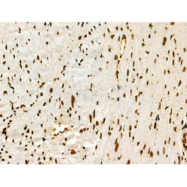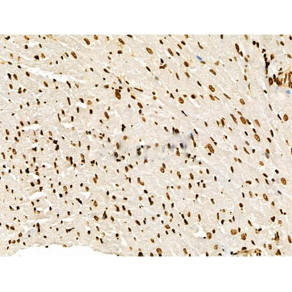 ab10676 at 1/100 staining Mouse heart tissue by IHC-P. The sample was formaldehyde fixed and a heat mediated antigen retrieval step in citrate buffer was performed. The sample was then blocked and incubated with the primary antibody at 4°C overnight. An HRP conjugated anti-Rabbit antibody was used as the secondary antibody....