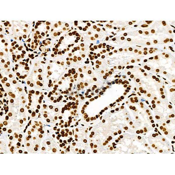 ab10676 at 1/100 staining Mouse kidney tissue by IHC-P. The sample was formaldehyde fixed and a heat mediated antigen retrieval step in citrate buffer was performed. The sample was then blocked and incubated with the primary antibody at 4°C overnight. An HRP conjugated anti-Rabbit antibody was used as the secondary antibody....
