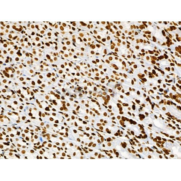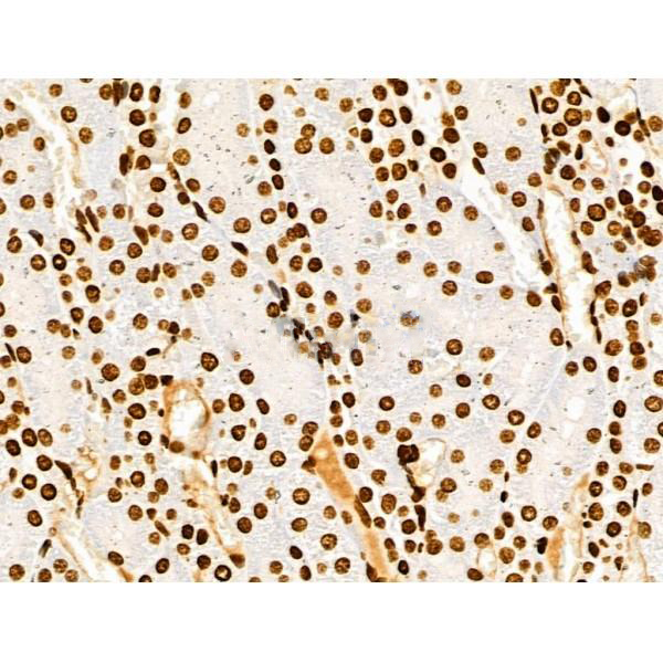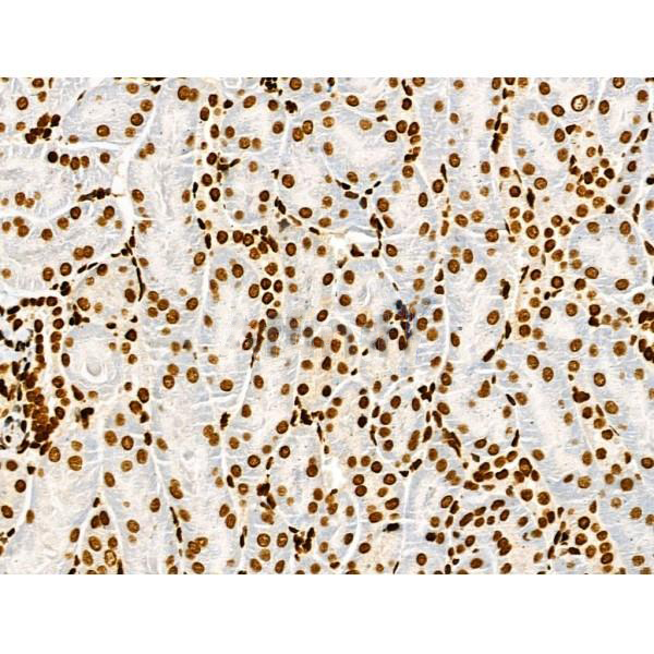 ab10676 at 1/100 staining Rat stomach tissue by IHC-P. The sample was formaldehyde fixed and a heat mediated antigen retrieval step in citrate buffer was performed. The sample was then blocked and incubated with the primary antibody at 4°C overnight. An HRP conjugated anti-Rabbit antibody was used as the secondary antibody....