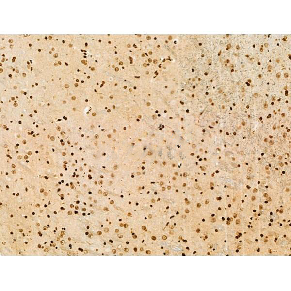 ab10676 at 1/100 staining Mouse brain tissue by IHC-P. The sample was formaldehyde fixed and a heat mediated antigen retrieval step in citrate buffer was performed. The sample was then blocked and incubated with the primary antibody at 4°C overnight. An HRP conjugated anti-Rabbit antibody was used as the secondary antibody....
