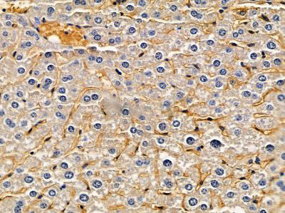 ab14592 at 1/100 staining mouse liver tissue by IHC-P. The sample was formaldehyde fixed and a heat mediated antigen retrieval step in citrate buffer was performed. The sample was then blocked and incubated with the primary antibody at 4°C overnight. An HRP conjugated anti-rabbit antibody was used as the secondary antibody....