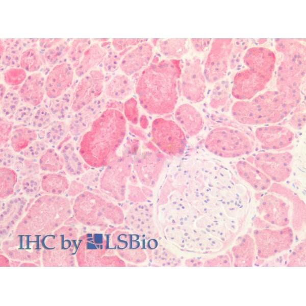 ab11086 at 1/100 staining Human Kidney tissue by IHC-P. The sample was formaldehyde fixed and a heat mediated antigen retrieval step in citrate buffer was performed. The sample was then blocked and incubated with the primary antibody at 4°C overnight. An HRP conjugated anti-Rabbit antibody was used as the secondary antibody....