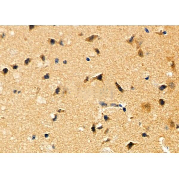 ab15705 at 1/100 staining Mouse brain tissue by IHC-P. The sample was formaldehyde fixed and a heat mediated antigen retrieval step in citrate buffer was performed. The sample was then blocked and incubated with the primary antibody at 4°C overnight. An HRP conjugated anti-Rabbit antibody was used as the secondary antibody....