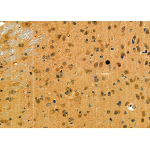 ab15707 at 1/100 staining Mouse brain tissue by IHC-P. The sample was formaldehyde fixed and a heat mediated antigen retrieval step in citrate buffer was performed. The sample was then blocked and incubated with the primary antibody at 4°C overnight. An HRP conjugated anti-Rabbit antibody was used as the secondary antibody....