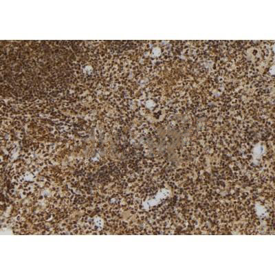 ab12763 at 1/100 staining Mouse spleen tissue by IHC-P. The sample was formaldehyde fixed and a heat mediated antigen retrieval step in citrate buffer was performed. The sample was then blocked and incubated with the antibody for 1.5 hours at 22°C. An HRP conjugated goat anti-rabbit antibody was used as the secondary antibody....