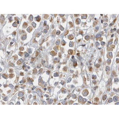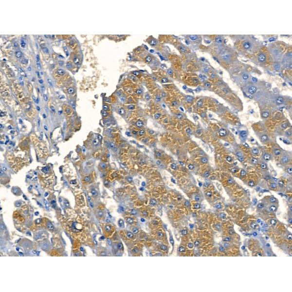 ab10927 at 1/100 staining Human liver cancer by IHC-P. The sample was formaldehyde fixed and a heat mediated antigen retrieval step in citrate buffer was performed. The sample was then blocked and incubated with the primary antibody at 4°C overnight. An HRP conjugated anti-Rabbit antibody was used as the secondary antibody....