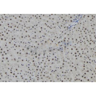 ab12867 at 1/100 staining Rat liver tissue by IHC-P. The sample was formaldehyde fixed and a heat mediated antigen retrieval step in citrate buffer was performed. The sample was then blocked and incubated with the antibody for 1.5 hours at 22°C. An HRP conjugated goat anti-rabbit antibody was used as the secondary antibody....