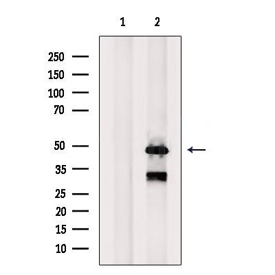 Western blot analysis of extracts from B16F10 cells, using AHCY Antibody. The lane on the left was treated with blocking peptide....