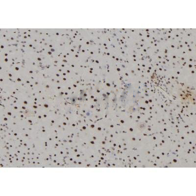 ab17295 at 1/100 staining Mouse liver tissue by IHC-P. The sample was formaldehyde fixed and a heat mediated antigen retrieval step in citrate buffer was performed. The sample was then blocked and incubated with the antibody for 1.5 hours at 22°C. An HRP conjugated goat anti-rabbit antibody was used as the secondary antibody....