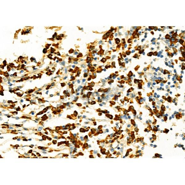 ab17295 at 1/100 staining Human lung cancer by IHC-P. The sample was formaldehyde fixed and a heat mediated antigen retrieval step in citrate buffer was performed. The sample was then blocked and incubated with the primary antibody at 4°C overnight. An HRP conjugated anti-Rabbit antibody was used as the secondary antibody....