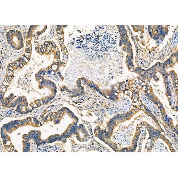 ab17773 at 1/100 staining Human prostate cancer by IHC-P. The sample was formaldehyde fixed and a heat mediated antigen retrieval step in citrate buffer was performed. The sample was then blocked and incubated with the primary antibody at 4°C overnight. An HRP conjugated anti-Rabbit antibody was used as the secondary antibody....