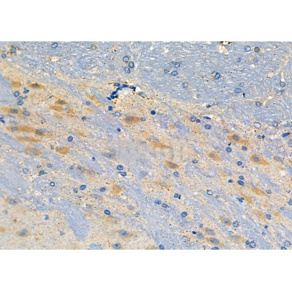 ab17773 at 1/100 staining Rat brain tissue by IHC-P. The sample was formaldehyde fixed and a heat mediated antigen retrieval step in citrate buffer was performed. The sample was then blocked and incubated with the primary antibody at 4°C overnight. An HRP conjugated anti-Rabbit antibody was used as the secondary antibody....