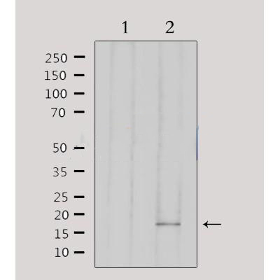 Western blot analysis of extracts from 293, using AIF1 Antibody. Lane 1 was treated with the antigen-specific peptide....