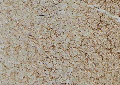 ab16500 at 1/100 staining rat brain tissue by IHC-P. The sample was formaldehyde fixed and a heat mediated antigen retrieval step in citrate buffer was performed. The sample was then blocked and incubated with the antibody for 1.5 hours at 22°C. An HRP conjugated goat anti-rabbit antibody was used as the secondary antibody....