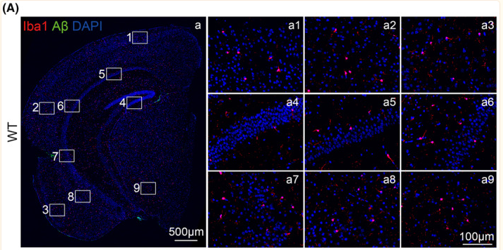 FIGURE 1 The expression of microglia and amyloid‐β (Aβ) plaques in wild‐type (WT) and Alzheimer...