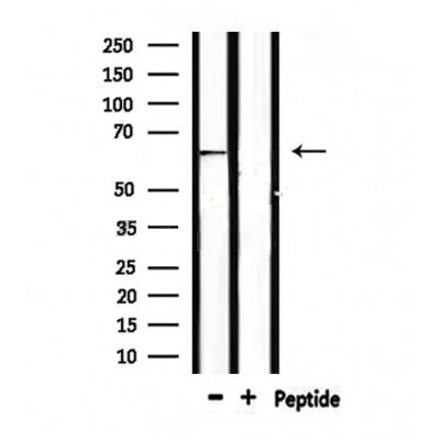 Western blot analysis of extracts from HepG2, using AIFM1 Antibody....