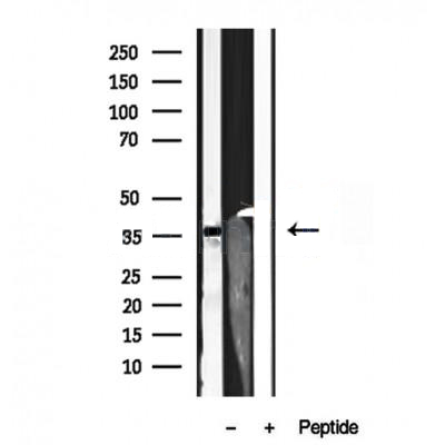 Western blot analysis of extracts from K-562 cells, using JTV1 antibody....