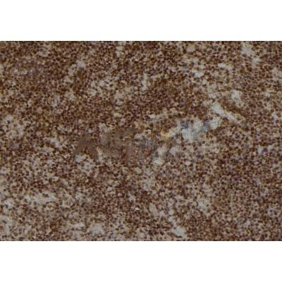 ab16670 at 1/100 staining Mouse spleen tissue by IHC-P. The sample was formaldehyde fixed and a heat mediated antigen retrieval step in citrate buffer was performed. The sample was then blocked and incubated with the antibody for 1.5 hours at 22°C. An HRP conjugated goat anti-rabbit antibody was used as the secondary antibody....