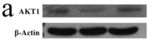 Western blot analysis of extracts from 293 cells, using AKT1 Antibody. The lane on the left was treated with blocking peptide....
