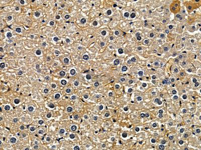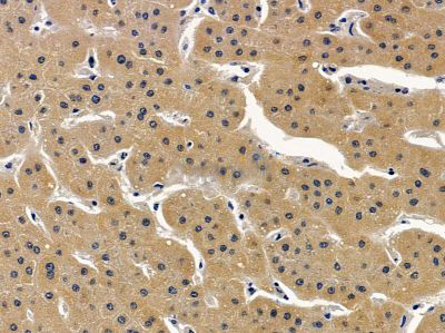 ab14614 at 1/100 staining mouse liver tissue by IHC-P. The sample was formaldehyde fixed and a heat mediated antigen retrieval step in citrate buffer was performed. The sample was then blocked and incubated with the primary antibody at 4°C overnight. An HRP conjugated anti-rabbit antibody was used as the secondary antibody....