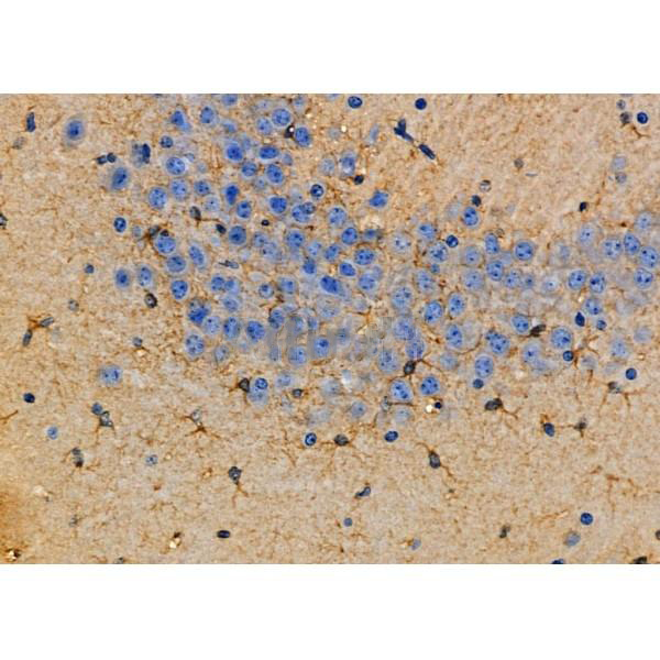 ab10497 at 1/100 staining Mouse brain tissue by IHC-P. The sample was formaldehyde fixed and a heat mediated antigen retrieval step in citrate buffer was performed. The sample was then blocked and incubated with the primary antibody at 4°C overnight. An HRP conjugated anti-Rabbit antibody was used as the secondary antibody....