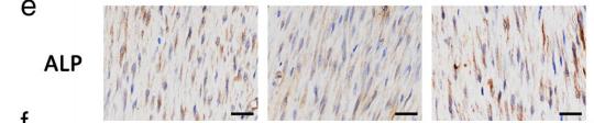 Fig. 5 |ADSC-Exos improved the healing of tendon injury. a, h The H&E staining of tendon injury at week 2 and week 4. b–f, i–m The expression of TNMD, collagen I, SCXA, ALP, and Runx2 were detected by immunohistochemistry assay at week 2 (n = 6) and week 4 (n = 6)....