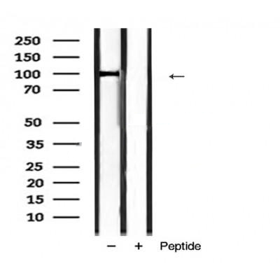 Western blot analysis of Catenin α1 expression in S3/rat liver tissue lysates,The lane on the right was treated with the antigen-specific peptide....