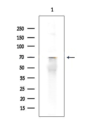 Western blot analysis of extracts from Mouse testis, using ANAPC5 Antibody at 1/1000 dilution. Observed bands:70kD....
