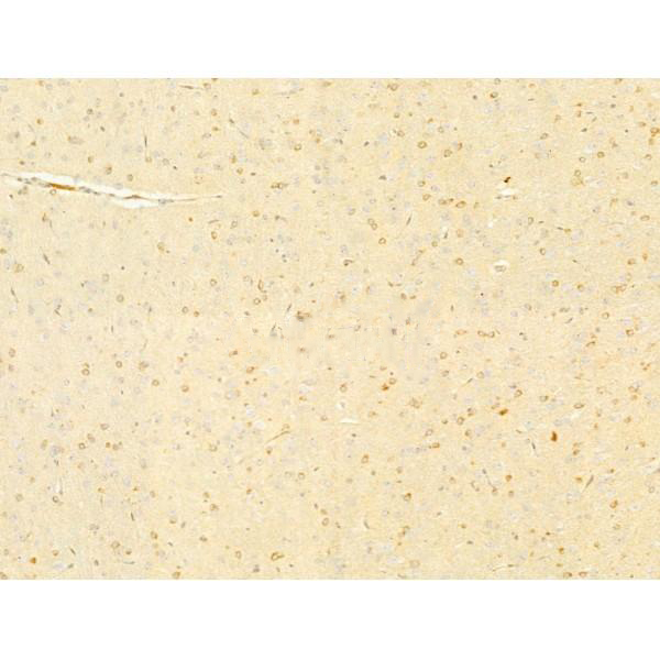 ab10388 at 1/100 staining Rat brain tissue by IHC-P. The sample was formaldehyde fixed and a heat mediated antigen retrieval step in citrate buffer was performed. The sample was then blocked and incubated with the primary antibody at 4°C overnight. An HRP conjugated anti-Rabbit antibody was used as the secondary antibody....
