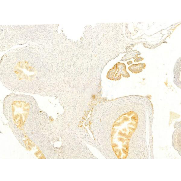 ab10388 at 1/100 staining Rat ovary tissue by IHC-P. The sample was formaldehyde fixed and a heat mediated antigen retrieval step in citrate buffer was performed. The sample was then blocked and incubated with the primary antibody at 4°C overnight. An HRP conjugated anti-Rabbit antibody was used as the secondary antibody....