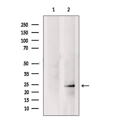 Western blot analysis of extracts from 3T3, using APR3 Antibody. The lane on the left was treated with blocking peptide....
