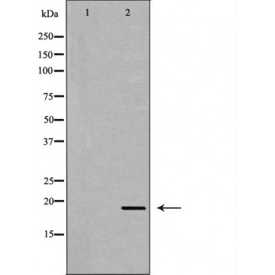 Western blot analysis of Hela whole cell lysates, using APRT Antibody. The lane on the left was treated with the antigen-specific peptide....