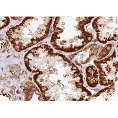 ab11024 at 1/100 staining human kidney tissue sections by IHC-P. The tissue was formaldehyde fixed and a heat mediated antigen retrieval step in citrate buffer was performed. The tissue was then blocked and incubated with the antibody for 1.5 hours at 22°C. An HRP conjugated goat anti-rabbit antibody was used as the secondary antibody....