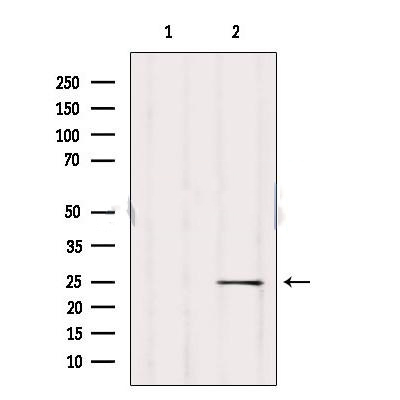 Western blot analysis of extracts from Mouse lung, using ARHGDIB Antibody. The lane on the left was treated with blocking peptide....