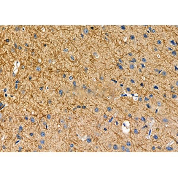 ab12141 at 1/100 staining Rat brain tissue by IHC-P. The sample was formaldehyde fixed and a heat mediated antigen retrieval step in citrate buffer was performed. The sample was then blocked and incubated with the primary antibody at 4°C overnight. An HRP conjugated anti-Rabbit antibody was used as the secondary antibody....