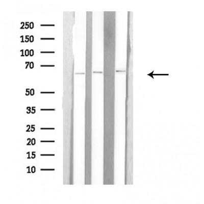Western blot analysis of extracts from K562/293/Jurkat cells, using ARSE antibody....