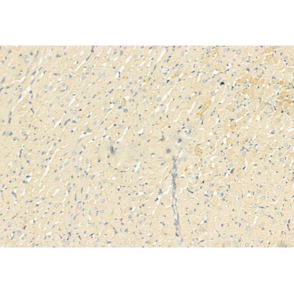 ab11649 at 1/100 staining Rat heart tissue by IHC-P. The sample was formaldehyde fixed and a heat mediated antigen retrieval step in citrate buffer was performed. The sample was then blocked and incubated with the primary antibody at 4°C overnight. An HRP conjugated anti-Rabbit antibody was used as the secondary antibody....