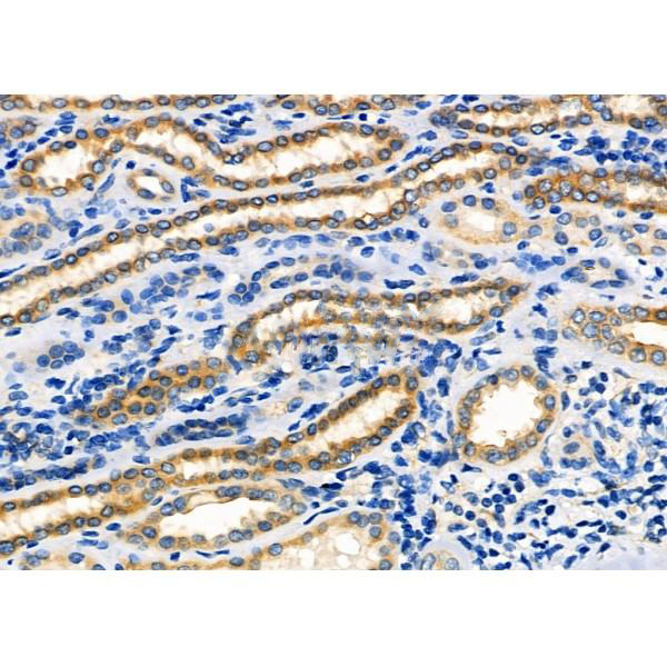 ab13244 at 1/100 staining Human kidney cancer and adjacent normal tissues by IHC-P. The sample was formaldehyde fixed and a heat mediated antigen retrieval step in citrate buffer was performed. The sample was then blocked and incubated with the primary antibody at 4°C overnight. An HRP conjugated anti-Rabbit antibody was used as the secondary antibody....