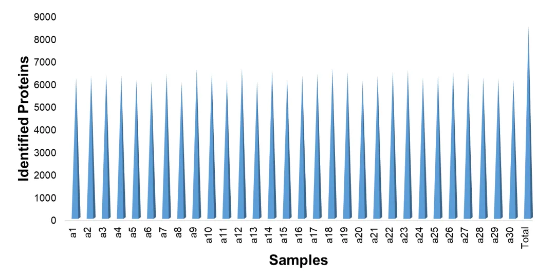 在大队列蛋白组研究中,质谱技术和实验体系的稳定性至关重要,直接影响数据的可靠性。体系的高稳定性可以确保在整个研究期间内,样本到样本之间具备一致和重复的结果,从而提高研究的整体质量和可信度。